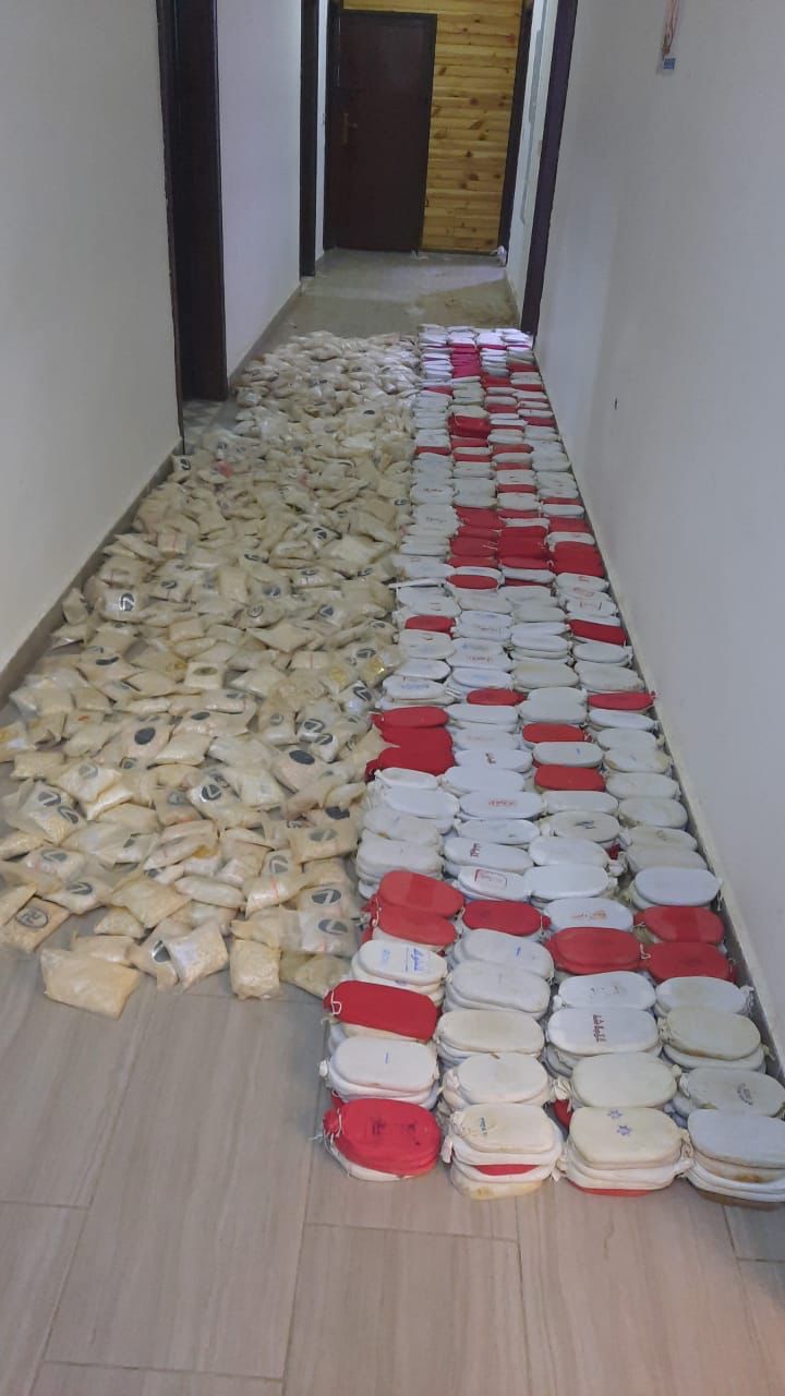 وبيّن الناطق الإعلامي في بيان اليوم، أنه واستكمالا للحملات الامنية المستمرة في منطقة الرويشد على تجار ومهربي المواد المخدرة فقد وردت معلومات استخبارية بقيام مجموعة من التجار والمهربين بإخفاء كميات ضخمة من تلك المواد لدى احد الاشخاص في منطقة صحراوية وعرة في البادية الشمالية .