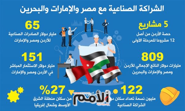 كشفت أمين عام وزارة الصناعة والتجارة والتموين دانا الزعبي عن 5 مشاريع أردنية تأهلت إلى مرحلة الخضوع لدراسات الجدوى الاقتصادية التي ستنفذها اللجنة العليا لمشاريع الشراكة الصناعية التكاملية للتنمية الاقتصادية المستدامة بين الاردن ومصر والإمارات والبحرين.