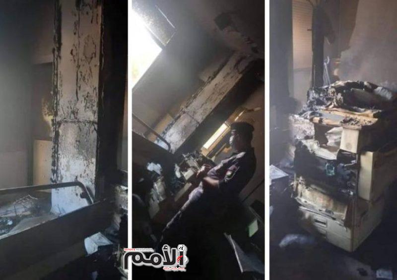 وقال مصدر أمني أن تماسا كهربائيا بأحد أجهزة الحاسوب داخل إحدى غرف مجمع النقابات العامة أدى إلى الحريق.