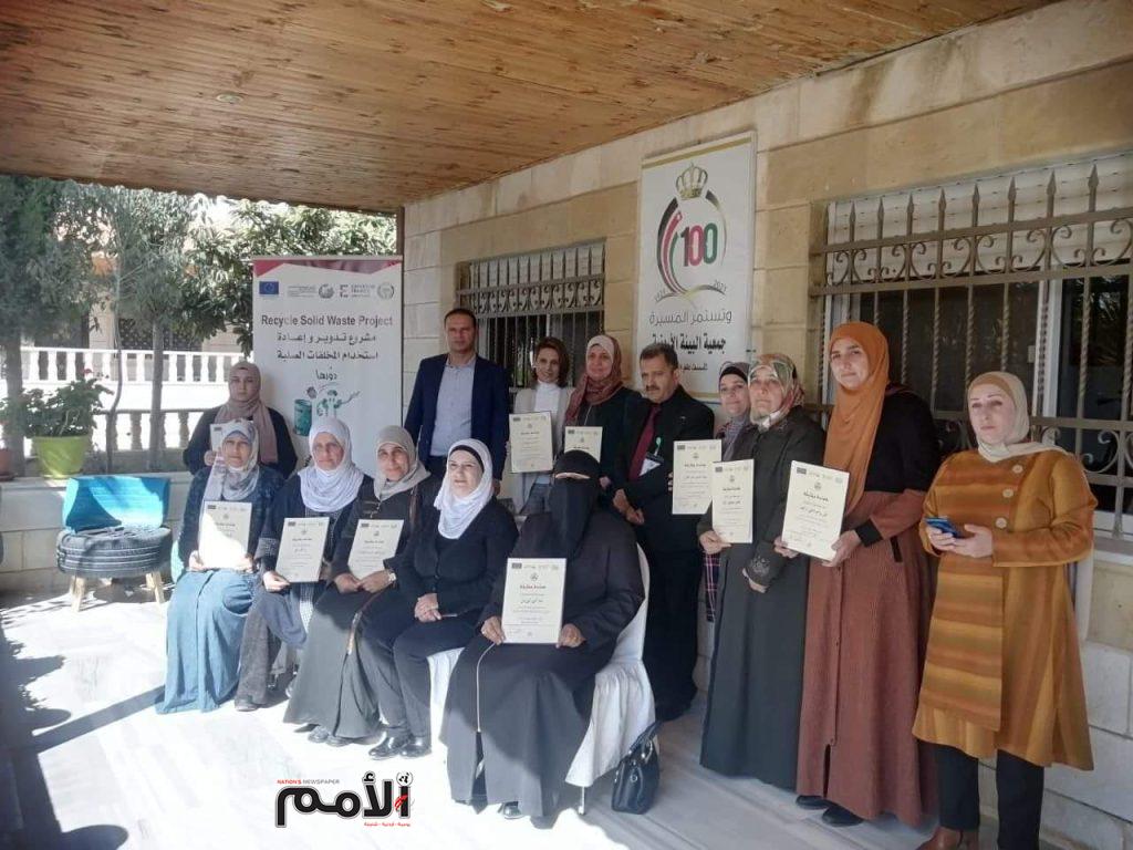 نظمت جمعية البيئة الاردنية اليوم في مركز التدريب وبناء القدرات حفل لتخريج المشاركات من مختلف المؤسسات بدورة إدارة النفايات الصلبة وإعادة الاستخدام .