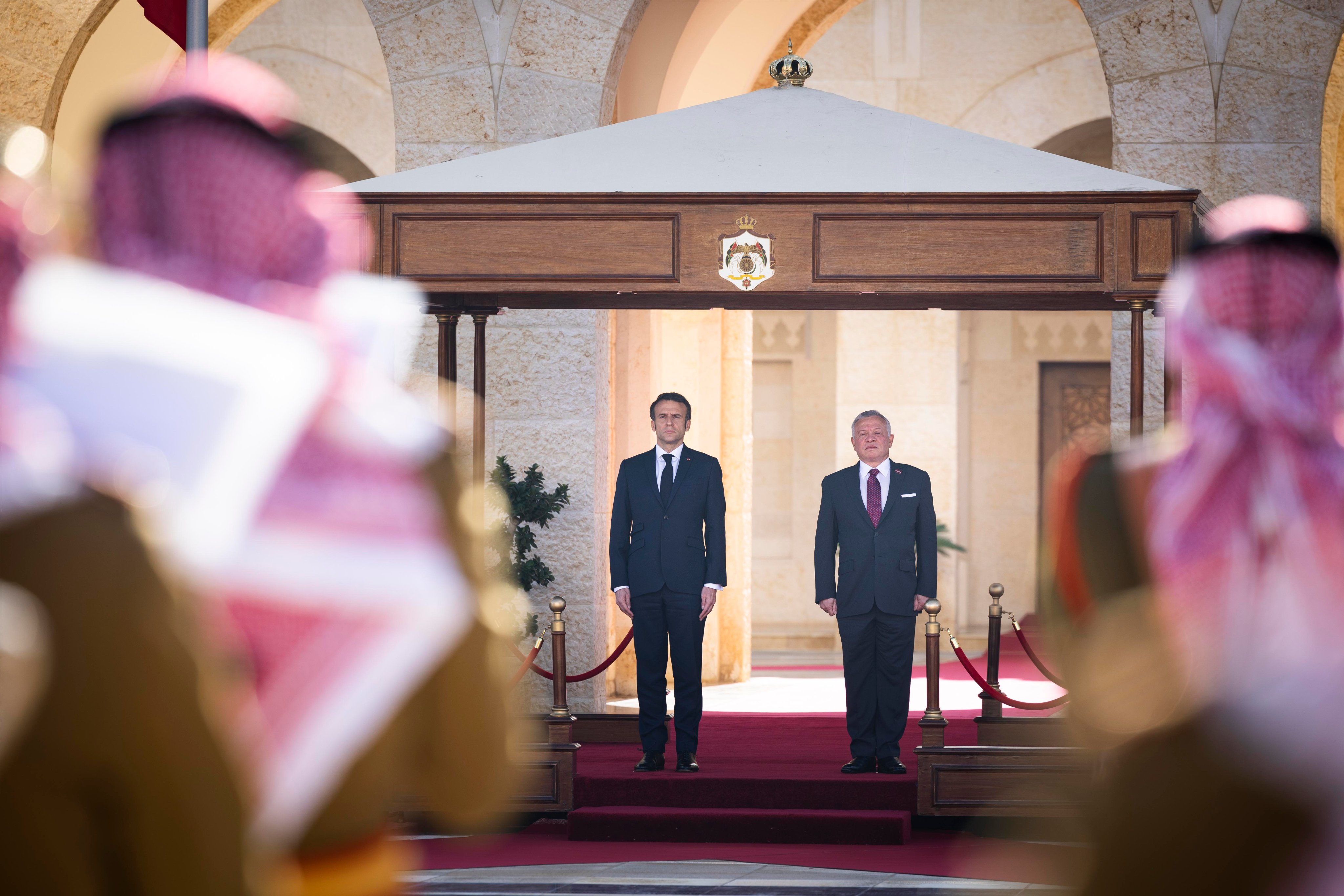 وحضر المباحثات رئيس الوزراء الدكتور بشر الخصاونة، ونائب رئيس الوزراء ووزير الخارجية وشؤون المغتربين أيمن الصفدي، ومدير مكتب جلالة الملك، الدكتور جعفر حسان، والسفير الأردني في باريس مكرم القيسي، وكبار المسؤولين الفرنسيين المرافقين للرئيس ماكرون.