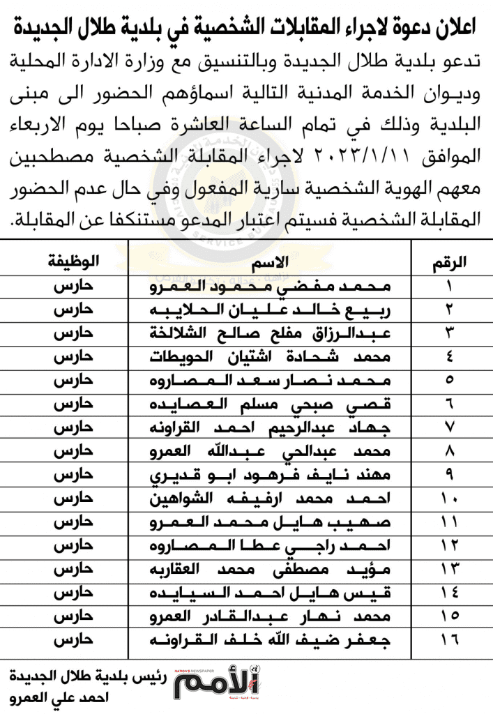 مدعوين للمقابلات الشخصيه – اسماء