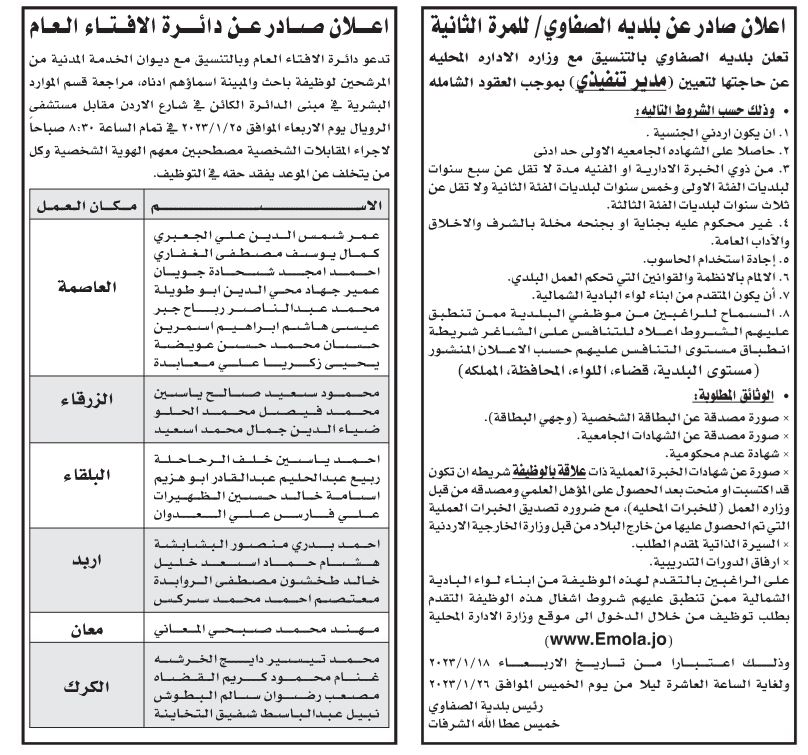 مدعوون للتعيين و وظائف حكومية شاغرة – اسماء شارك أعلنت عدد من المؤسسات الحكومية اليوم الاربعاء، بالتنسيق مع ديوان الخدمة المدنية، عن حاجتها لتعيين وتعبئة وظائف شاغرة وإجراء مقابلات شخصية.وتالياً التفاصيل: Share and Enjoy !Shares