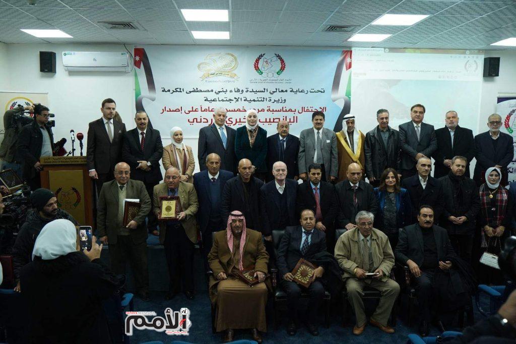 وفي نهاية الاحتفال الذي حضره مدير عام صندوق المعونة الوطنية ختام شنيكات وأعضاء الهيئة الإدارية للاتحاد العام ورؤساء الاتحادات في المحافظات وكبار موظفي وزارة التنمية وممثلي وسائل الاعلام وشبكات التلفزة والاذاعات الأردنية كرمت الوزيرة بني مصطفى الرؤساء السابقين لاتحاد العام للجمعيات الخيرية ورؤساء الاتحاد في المحافظات واصحاب المشاريع الرائدة ومدراء اليانصيب الخيري السابقين والوكلاء والباعة كما قدم الدكتور عضيبات درع تقديري للوزيرة بني مصطفى تقديرا لجهودها التي اكسبت الاحتفال أهمية وقيمة مضافة والتعاون الذي يقدم من الوزارة لدعم الاتحاد.