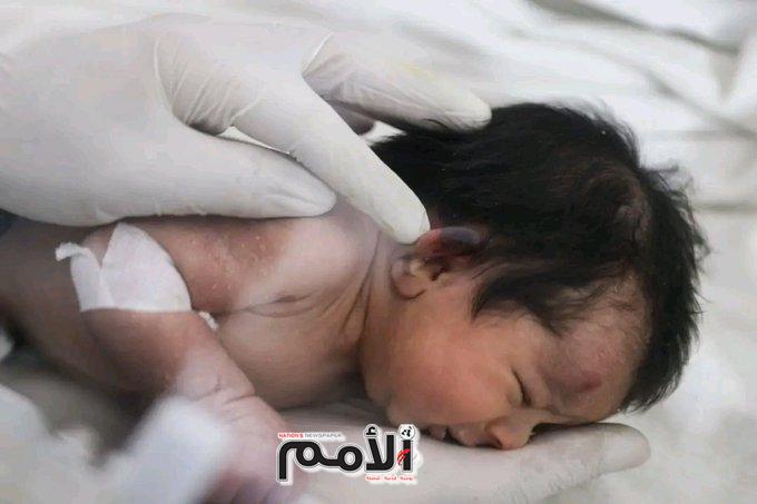 خرجت الطفلة من تحت الظلمة ومن تحت الركام والغبار لتنبعث فيها الحياة مجددا ، فقد ولدت وبقيت متصلة بالحبل السري مع والدتها التي ماتت ووالدها وأشقاءها الأربعة تحت سقف واحد، فمن رحم المعاناة يولد الأمل.