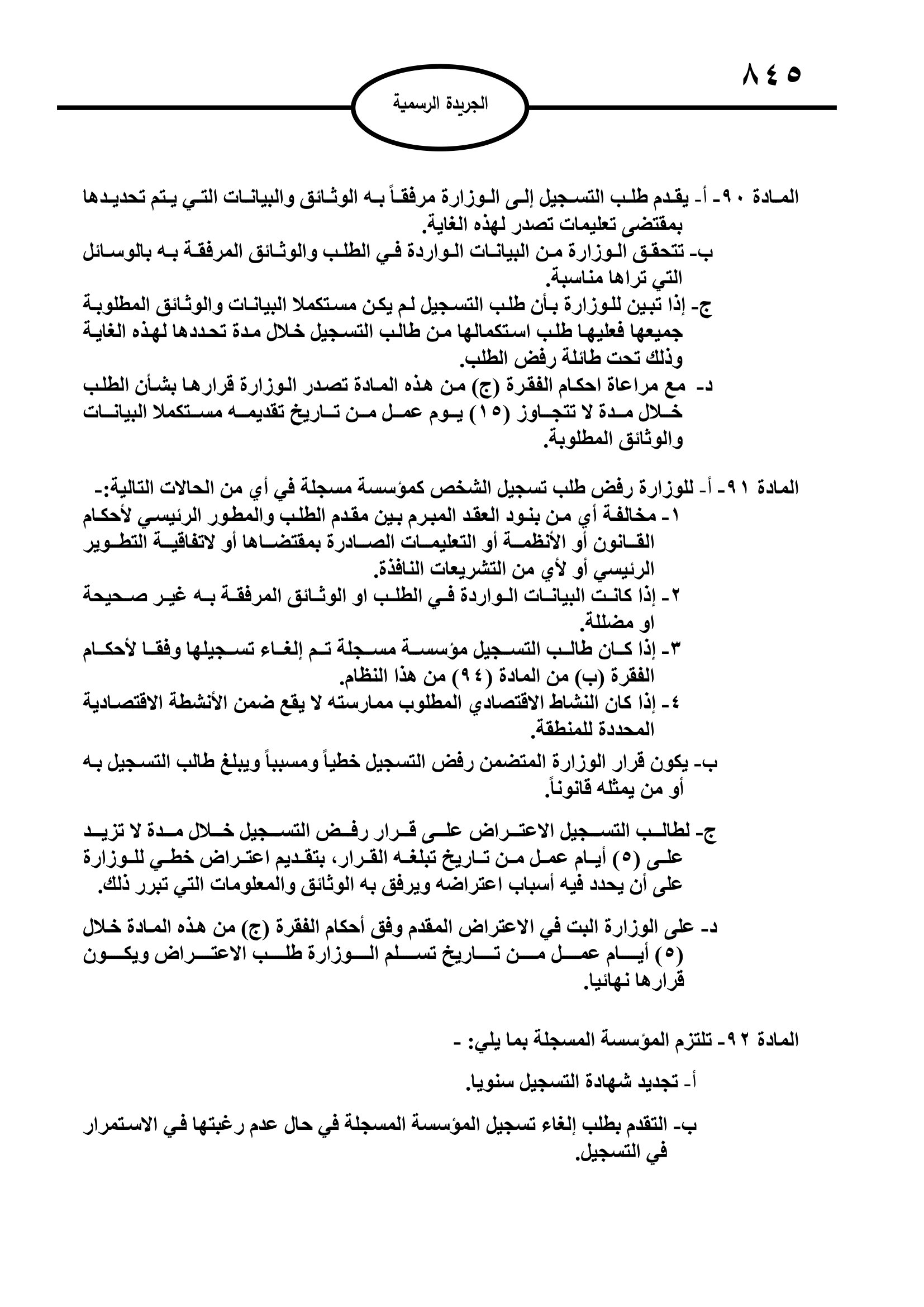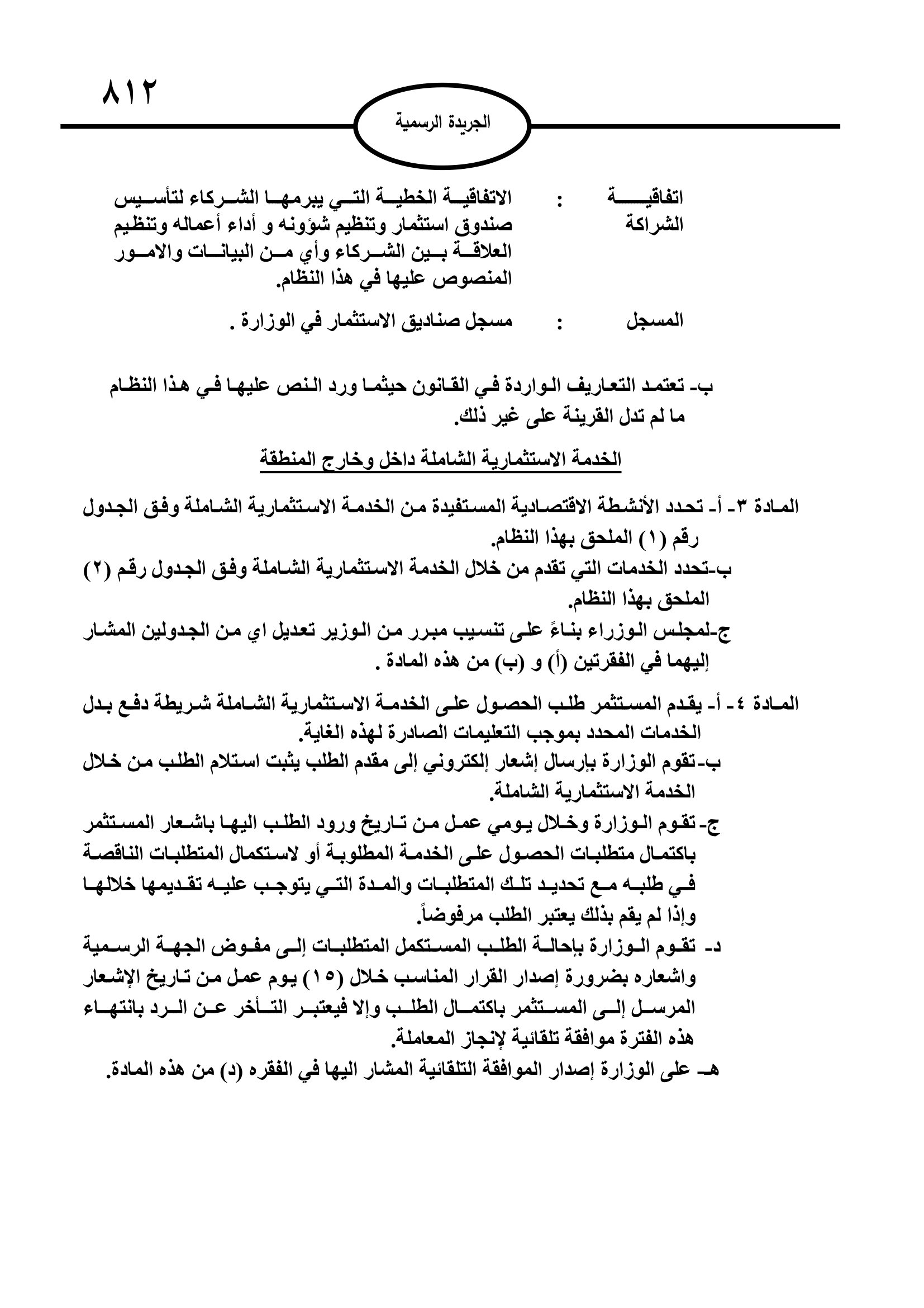 صدر في الجريدة الرسمية، الإرادة الملكية السامية بالموافقة على نظام تنظيم البيئة الاستثمارية.