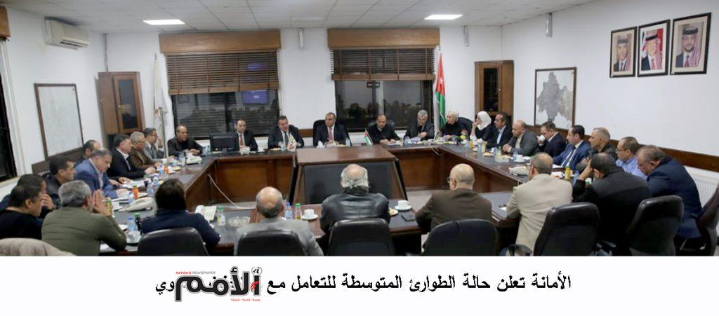 أعلنت أمانة عمان الكبرى، حالة الطوارئ المتوسطة، اعتباراً من صباح غد الأربعاء، وتحديث مستوى الحالة إلى قصوى (مياه) عصراً تزامناً مع دخول المنخفض الجوي والمتوقع أن يصاحبه زخات غزيرة من المطر وفق نشرات دائرة الارصاد ومراكز التنبؤات الجوية.