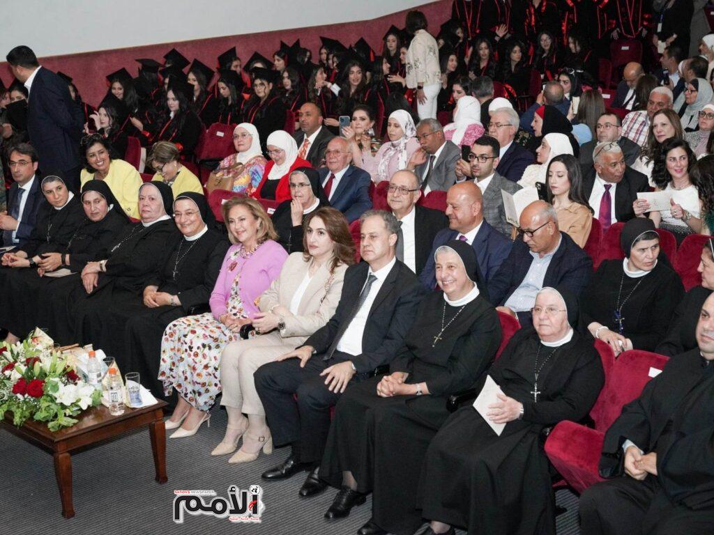 والقت كلمة الخريجات بثلاث لغات العربية والانجليزية والفرنسية الطالبات راية المدانات وارياف قاقيش وميس الحاج وبادية حجازي وملاك حياصات وسيرين الساكت .