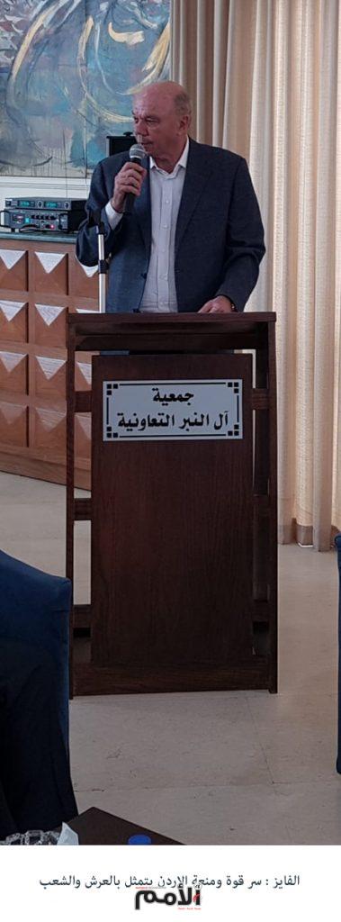 وقال الفايز: “إن سر قوة ومنعة الاردن واستقراره الامني والسياسي، هو جلالة الملك الذي يمثل صمام الأمان الاول للاردن، وعنوان العزة والفخر والكرامة، كما ان قوة تماسك نسيجنا الاجتماعي ووحدتنا الوطنية مكنتنا من المحافظة على الأمن والإستقرار رغم الظروف المحيطة بنا، والتحديات التي تواجهنا والضغوطات التي تمارس علينا”.