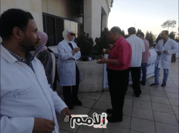 وقفة احتجاجية للعاملين بالمهن الطبية المساندة في مستشفى الأمير حمزة