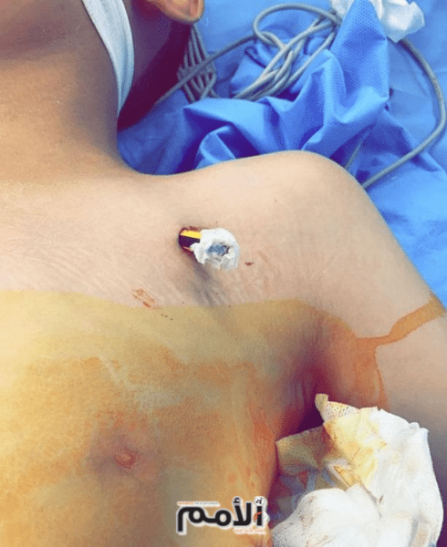 – تعرض طفل يبلغ من العمر 12 عاما لاختراق قلم رصاص في منطقة أعلى الصدر والرقبة أدت إلى نزيف في التجويف الصدري وتهتك في شريان الذراع الأيسر في منطقة الرقبة.