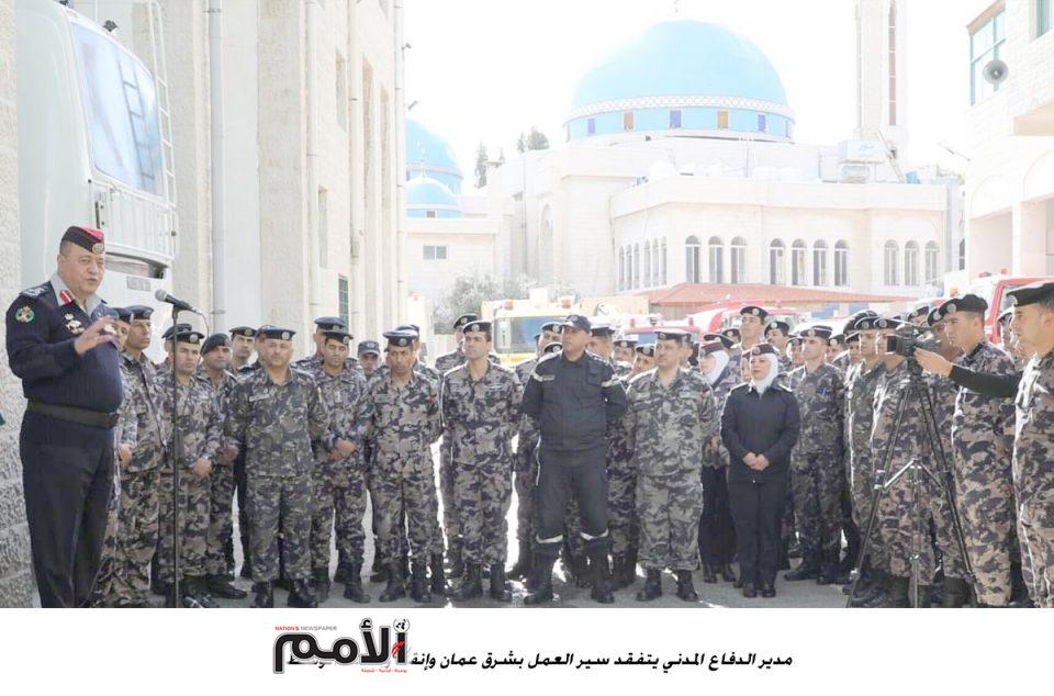 تفقد مدير الدفاع المدني العميد محمد الصبيحي اليوم الأثنين، سير العمل في مديريتي دفاع مدني شرق عمان وإنقاذ وإسناد الوسط، للوقوف على جاهزيتهما في توفير أعلى درجات الحماية والسلامة للمواطنين والمحافظة على ممتلكاتهم من شتى صنوف المخاطر.