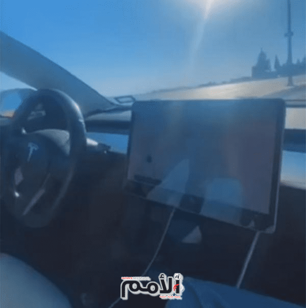 و أرفقت الإذاعة مقطع فيديو يظهر الشاب وهو يجلس بالمقعد الجانبي للسائق، تاركا مركبته تسير لوحدها وسط الطريق.