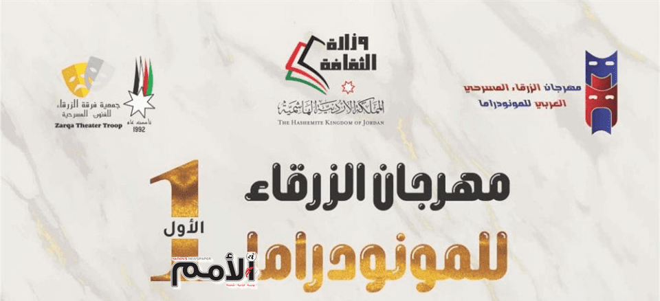 اختُتمت على مسرح مركز الملك عبد الله الثاني الثقافي في الزرقاء فعاليات مهرجان الزرقاء الأول للمونودراما، التي نظمتها مديرية ثقافة محافظة الزرقاء بالتعاون مع فرقة الزرقاء للفنون المسرحية وأمانة عمان الكبرى ونقابة الفنانين الأردنيين، وبمشاركة عربية واسعة، برعاية أمين عام وزارة الثقافة الدكتور ماهر نفش، مندوبا عن وزيرة الثقافة وحضور نائب محافظ الزرقاء د. سعود الحربي، ومدير ثقافة الزرقاء، ايمن عرار وجمع من الفنانين والكتاب والمهتمين، وأدارت فقراته الفنانة عبير عيسى.