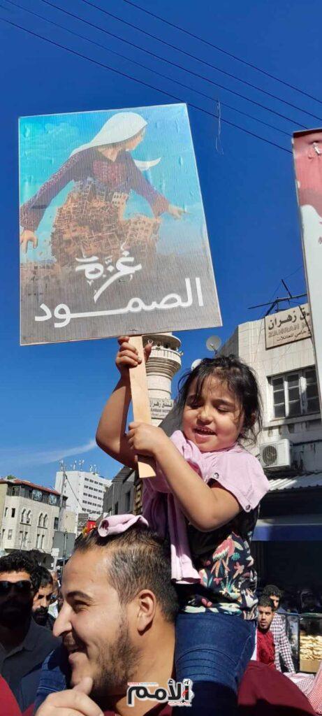 وحيّا المشاركون في المسيرة، الذين حملوا الأعلام الأردنية والفلسطينية، صمود أبناء الشعب الفلسطيني وتضحيات أبناء غزة والضفة الغربية في وجه آلة البطش والعدوان الهمجي الإسرائيلي، الذي يستهدف المدنيين العزل في منازلهم، ويدمر المؤسسات المدنية والبنية التحتية ودور العبادة، ومؤسسات تعليمية وإغاثية أممية.