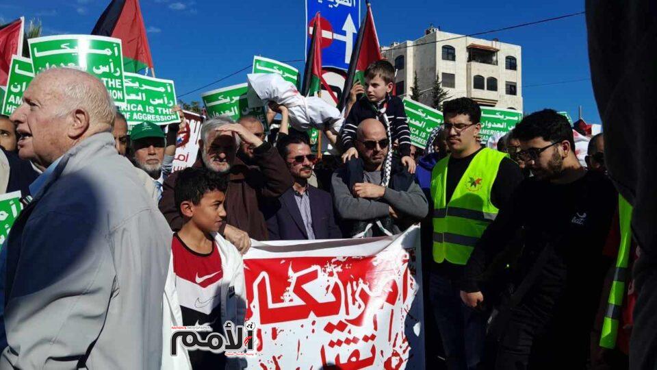 انطلقت فعاليات شعبية وحزبية، ظهر اليوم الجمعة، في مظاهرة حاشدة من أمام مسجد عباد الرحمن باتجاه السفارة الأمريكية في منطقة عبدون تحت شعار “أمريكا رأس العدوان”، مرددين هتافات تدين أمريكا ومواقفها المنحازة للعدوان الصهيوني الغاشم على قطاع غزة .