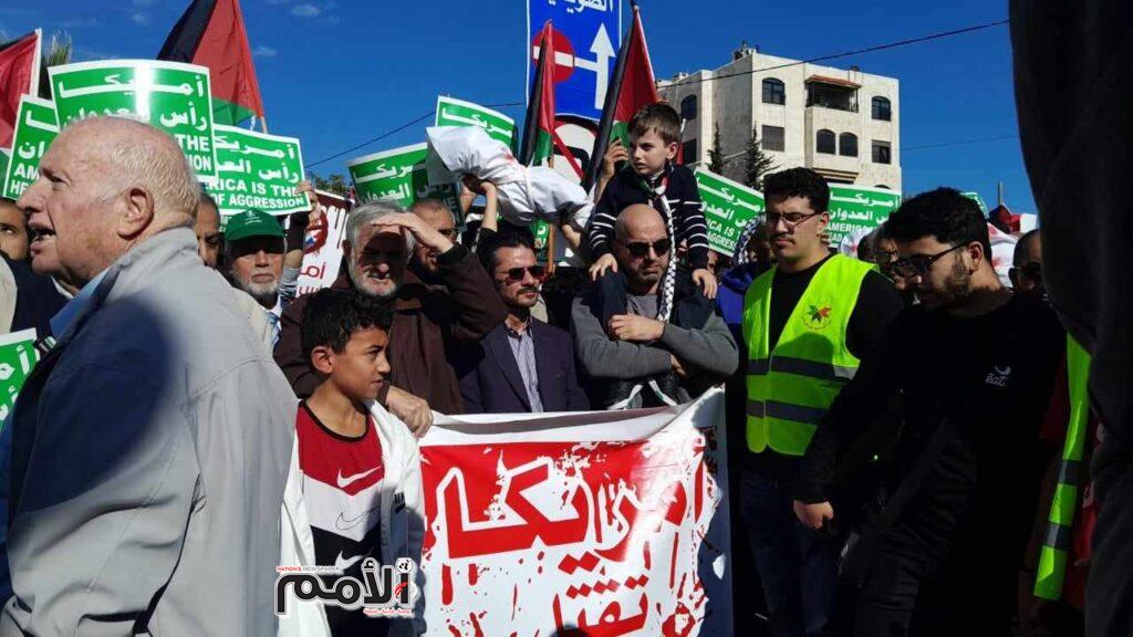 حشود أردنية غاضبة تهتف نصرة لغزة وتدين شراكة أمريكا في المجازر – صور