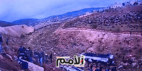 5 وفيات و35 إصابة بحادث تدهور حافلة على طريق سلحوب (فيديو)
