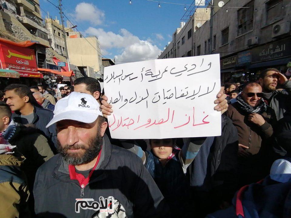 وأكد المشاركون في المسيرة رفضهم اتفاقية الغاز مع العدو الصهيوني باعتبارها مساسا لمواقف الأردن ودعما لاقتصاد الاحتلال الاسرائيلي.