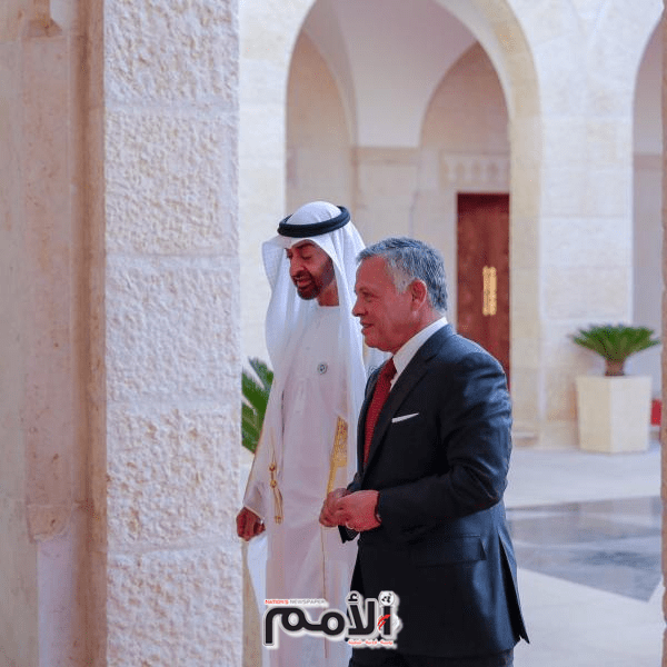 عقد جلالة الملك عبدالله الثاني وسمو الشيخ محمد بن زايد آل نهيان رئيس دولة الإمارات العربية المتحدة الشقيقة لقاء، اليوم الاثنين، بقصر بسمان الزاهر، في إطار التنسيق المستمر والجهود المبذولة لوقف الحرب على غزة.