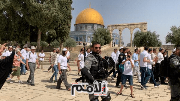 وأفادت دائرة الأوقاف الإسلامية، باقتحام عشرات المستوطنين للمسجد الأقصى من جهة باب المغاربة، بحراسة مشددة من شرطة الاحتلال، في أول أيام العيد وسط تنكّر مستوطنين متطرفين من جماعات المعبد بزي “كهنة المعبد” تكريسا للحضور الديني اليهودي المتطرف في الأقصى.