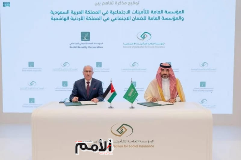 وقّعت المؤسسة العامة للضمان الاجتماعي في الأردن والمؤسسة العامة للتأمينات الاجتماعية في السعودية مذكرة تفاهم لتعزيز التعاون وتبادل الخبرات في مجال التأمينات الاجتماعية بين الجهتين .