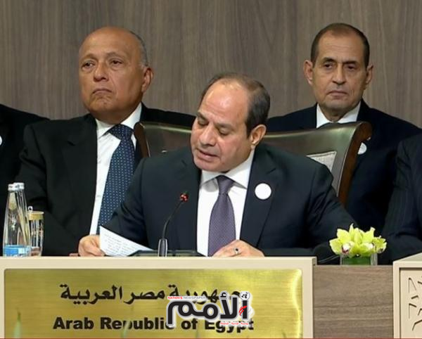 لقد حذرت مصر مراراً من خطورة هذه الحرب وتبعاتها.. والتداعيات الجسيمة.. للعمليات العسكرية الإسرائيلية في مدينة رفح الفلسطينية.. التي أدى المضي قدماً بها.. إلى إقامة وضع.. يعوق التدفقات الإغاثية.. التي كانت تدخل القطاع بشكل رئيسي من معبر رفح.. ولذلك.. فإنني أطالب من هنا.. وبتضافر جهود وإرادة المجتمعين اليوم.. باتخاذ خطوات فورية وفعالة وملموسة.. لإنفاذ ما يلي:
