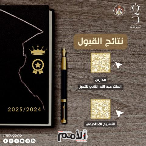 أعلنت وزارة التربية والتعليم، الثلاثاء، أسماء المقبولين بمدارس الملك عبدالله الثاني للتميز.