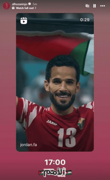 – نشر سمو ولي العهد، الأمير الحسين بن عبدالله الثاني، عبر خاصية الستوري في حسابه بالأنستغرام أغنية “أبشري يا بلادي حنا لها” لصوت الأردن عمر العبداللات .