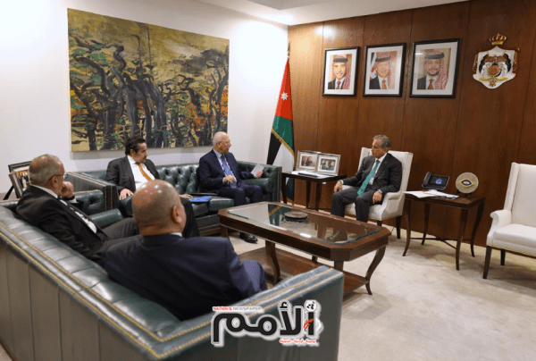 التقى رئيس الوزراء الدكتور جعفر حسان أمس الثلاثاء، نقيب المهندسين المهندس أحمد سمارة الزعبي، ونقيب مقاولي الإنشاءات المهندس أيمن الخضيري، في إطار لقاءاته التواصلية مع ممثلي مختلف القطاعات الوطنية، من بينها النقابات المهنية.