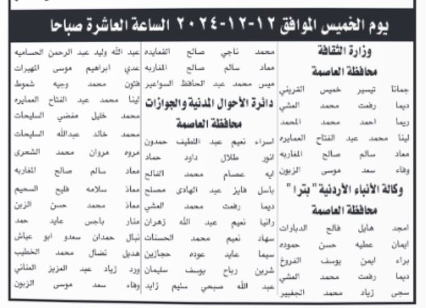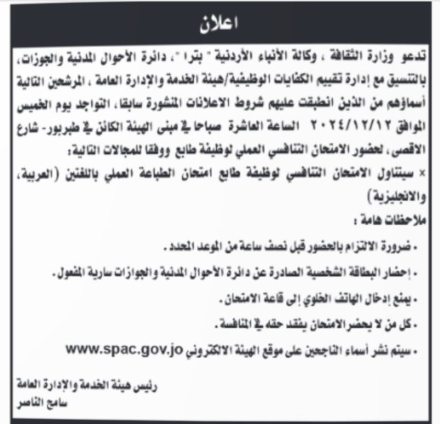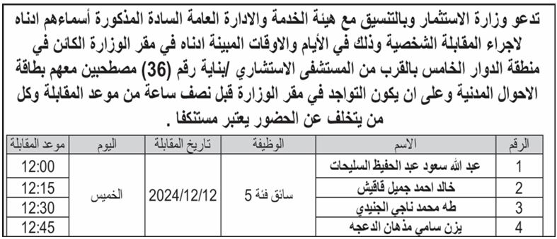 وظائف شاغرة ومدعوون للمقابلات والامتحان التنافسي (أسماء) شارك أعلنت عدد من الوزارات والمؤسسات الرسمية، اليوم الإثنين، عن حاجتها لتعبئة وظائف شاغرة، فيما دعت مؤسسات اخرى مرشحين لاجراء المقابلات الشخصية.وتاليا التفاصيل: Share and Enjoy !Shares
