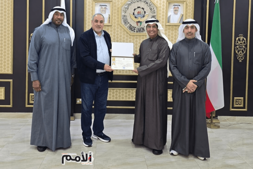 زار رئيس الاتحاد العام لنقابات عمال الأردن خالد الفناطسة، مقر الاتحاد العام لنقابات عمال الكويت، والتقى برئيس الاتحاد م.صباح عيد العقاب، وعدد من أعضاء المكتب التنفيذي للاتحاد، بهدف الإطلاع على تجربة الكويت في العمل النقابي، وبحث آليات التعاون وتبادل الخبرات.