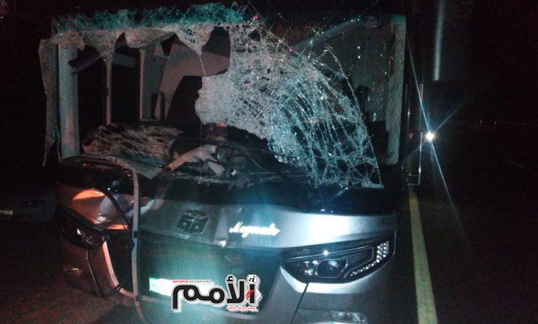 تعاملت كوادر دفاع مدني محافظة الكرك والأجهزة الأمنية بالمحافظة، مع حادث صدم لحافله عموميه بجمل على الطريق الصحراوي بمنطقة سد السلطاني بمحافظة الكرك.