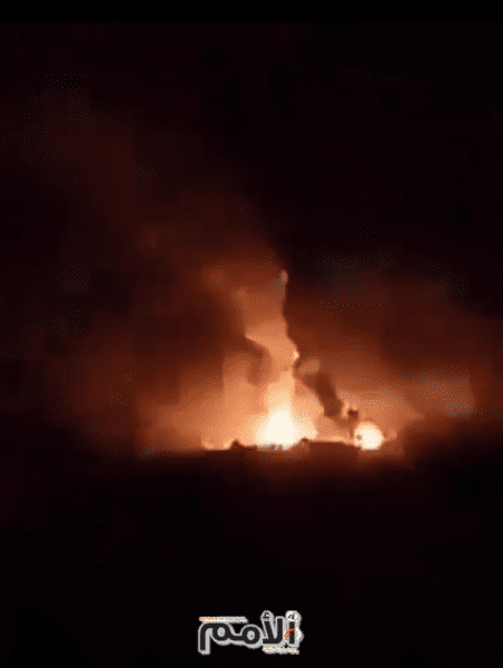 وبثت قناة المسيرة التابعة للحوثيين مقاطع تظهر النيران مشتعلة في مبنى مُدمّر، فيما تحاول سيارات الإطفاء الدخول للمكان حيث تناثرت بقع الدماء على الأرض قرب سيارات محطمة تماما.