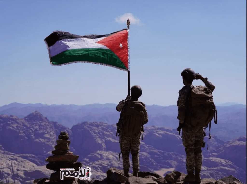 الامم –  رفع عدد من مرتبات القوات المسلحة الأردنية، اليوم الثلاثاء، علم المملكة الأردنية الهاشمية على أعلى قمة جبلية في الأردن، جبل “أم الدامي”، وذلك تزامنًا مع احتفالات المملكة بيوم العلم الذي يصادف السادس عشر من نيسان كل عام.