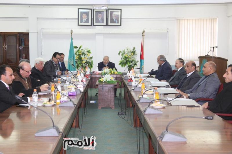 وحضر الاجتماع كل من اعضاء المجلس : السيد محمد خلف أخوارشيده والاستاذ الدكتور يوسف السوالمة والأستاذ الدكتور كمال الحديدي والاستاذ الدكتور موسى السعودي والمهندس عبد الوهاب الزعبي