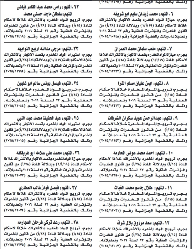 – أمهلت محكمة أمن الدولة 42 متهماً عشرة أيام من تاريخ اليوم الخميس لتسليم انفسهم إلى السلطات القضائية المختصة لمحاكمتهم عن التهم المسندة لكل منهم.