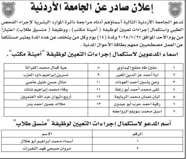 وظائف حكومية شاغرة ومدعوون لاستكمال إجراءات التعيين (أسماء) شارك – أعلنت مؤسسات حكومية، اليوم الخميس، عن حاجتها لتعبئة وظائف شاغرة.فيما دعت مؤسسات اخرى التالية أسماؤهم لاستكمال اجراءات التعيين: Share and Enjoy !Shares