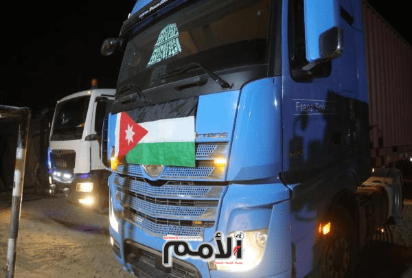 واشتملت القافلة، التي تضم 19 شاحنة، على كميات من المستلزمات الطبية والدوائية، والمواد الغذائية، والمياه، والمساعدات الإنسانية، إضافة إلى كميات من الوقود، جرى تجهيزها من قبل مديرية التموين والنقل الملكي لضمان استمرارية عمل المستشفيين بكامل طاقتهما التشغيلية في تقديم الرعاية الطبية والعلاجية للمرضى والمصابين في القطاع.