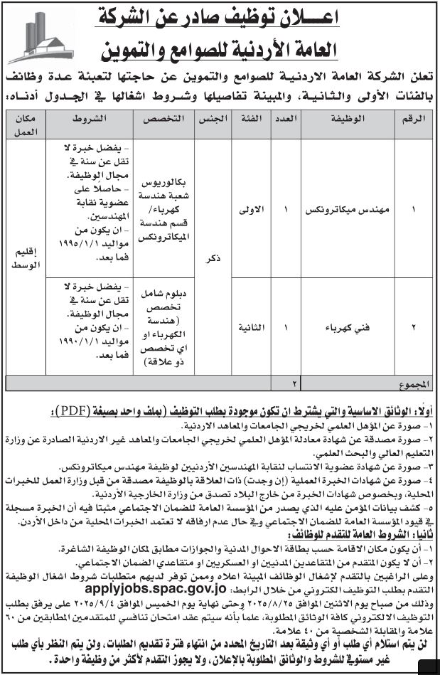 كما أعلنت الشركة العامة الأردنية للصوامع والتموين، عن توفر شواغي في تخصصات مختلفة.