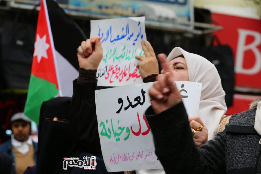 ورفع المحتجون سعارات تندد باتفاقية الغاز الإسرائيلية الأردنية.