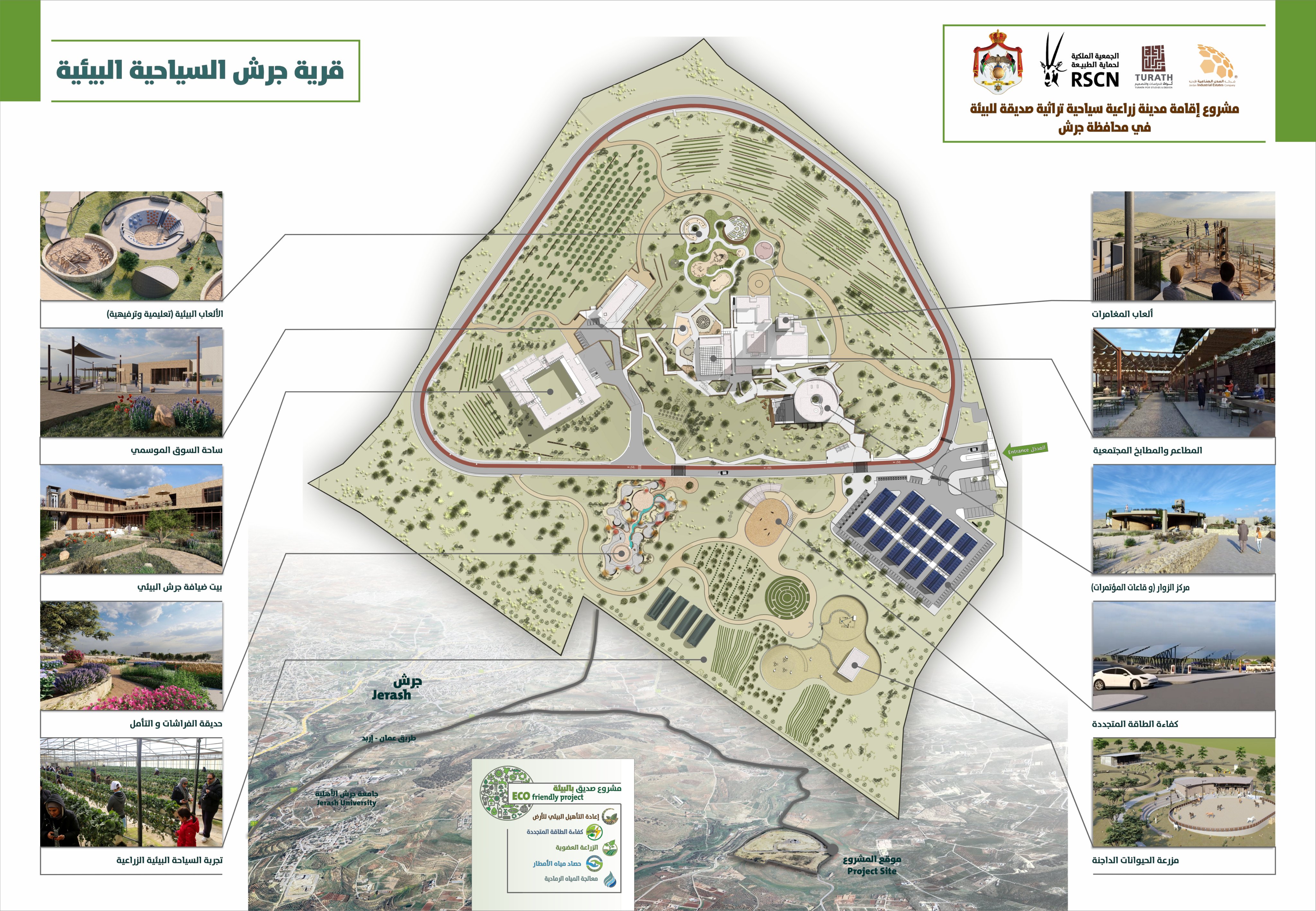 ويوفر مشروع القرية السياحيَّة البيئيَّة في جرش، بيئة سياحيَّة فريدة ومتكاملة، ويشمل إنشاء حديقة بيئية متكاملة المرافق تعتمد أنظمة بيئية حديثة ومستدامة تعكس هوية المنطقة وطبيعتها، وفندقاً رفيقاً للبيئة، وقاعة مؤتمرات، ومرافق للعائلات والأطفال، وأماكن للألعاب وأنشطة المغامرات ويوفِّر مساحة لعرض وتسويق المنتجات المحليَّة.
