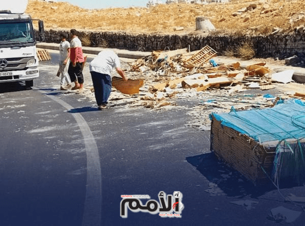 سقوط حمولة شاحنة يتسبب بأزمة خانقة على طريق المطار