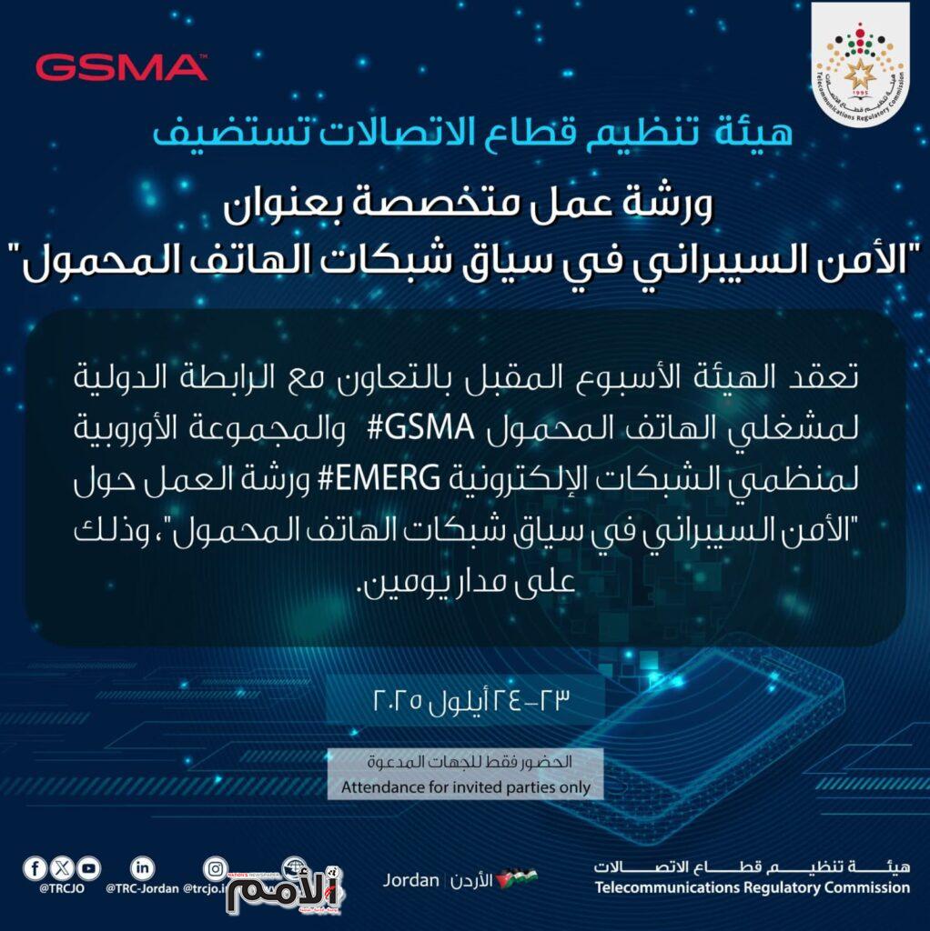 تستضيف هيئة تنظيم قطاع الاتصالات الأسبوع المقبل فعاليات ورشة العمل المتخصصة في الامن السيبراني في سياق الهاتف المحمول والتي تنظمها الهيئة بالشراكة مع الرابطة الدولية لمشغلي الهواتف المتنقلة GSMA ومجموعة منظمي الاتصالات لدول البحر الأبيض المتوسط EMERG بمشاركة عدد من الجهات ذات العلاقة محلياً وعربياً والمعنيين في الهيئة.ويأتي انعقاد الورشة ضمن جهود هيئة تنظيم قطاع الاتصالات لتعزيز القدرات الوطنية في مواجهة التحديات السيبرانية، ومواكبة التطورات المتسارعة في عالم الاتصالات، بما يضمن بناء بيئة رقمية آمنة ومستدامة في المملكة وفي تعزيز الامن السيبراني في قطاع الاتصالات، وفي وقت يتزايد فيه التركيز العالمي على التهديدات السيبرانية التي تستهدف البنية التحتية الرقمية، وتحديداً شبكات الاتصالات المتنقلة.وتشكل الورشة منصة مهمة لتعزيز الوعي وبناء القدرات في مجال الامن السيبراني. وتهدف الى تمكين المشاركين من فهم المفاهيم الأساسية المرتبطة بأمن شبكات الهاتف المحمول، إلى جانب تسليط الضوء على الأطر التنظيمية والسياسات اللازمة لضمان بيئة رقمية آمنة للمستهلكين والحكومات والشركات.