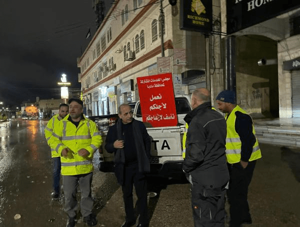 واطلع الوزير خلال الجولة على غرفة الطوارئ في بلدية ناعور، واستمع إلى إيجاز من رئيس لجنة البلدية حول الاستعدادات المسبقة المتخذة، بما في ذلك جاهزية الآليات والكوادر الفنية والميدانية، وآليات الاستجابة للحالات الطارئة خلال المنخفض.