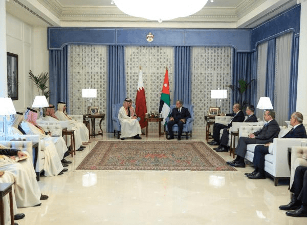 – أجرى رئيس الوزراء جعفر حسَّان، الأحد، مباحثات مع رئيس مجلس الوزراء وزير الخارجيَّة في دولة قطر الشَّقيقة الشَّيخ محمَّد بن عبد الرَّحمن آل ثاني تناولت العلاقات الأخويَّة الرَّاسخة وسُبُل تعزيزها بين البلدين الشَّقيقين وتطورات الأوضاع في المنطقة