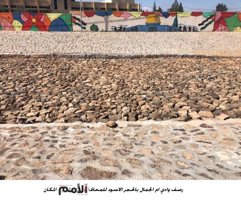 رصف وادي ام الجمال بالحجر الاسود للمحافظة على تراثية المكان