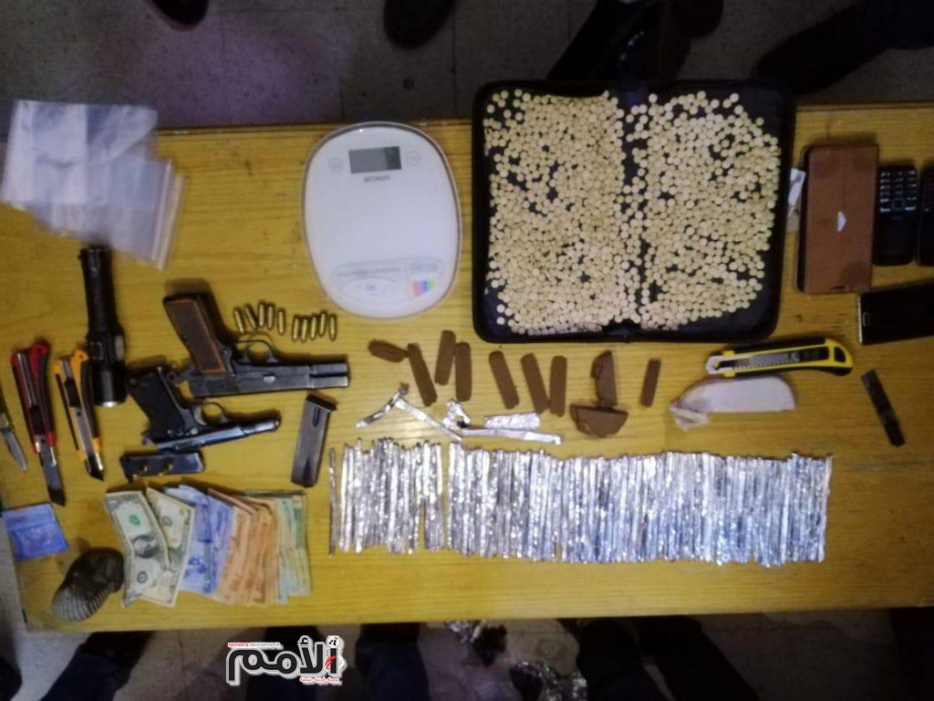 وفي ذات السياق فقد قامت قوة امنية من ادارة مكافحة المخدرات وباسناد من البحث الجنائي وشرطة العقبة من مداهمة منزل شخص مطلوب ومشتبه به بقضايا الاتجار بالمواد المخدرة بعد التأكد من تواجده داخله وبحوزته كميات كبيرة من تلك المواد ، حيث القي القبض عليه وبتفتيش المنزل عثر داخله على (١٣٧٥) حبة مخدرة وكمية من مادة الحشيش المخدرة المعدة للبيع وسلاح ناري ، وضبط داخل المنزل كذلك شخص اخر ضبط بحوزته سلاح ناري وبوشر التحقيق معهما .