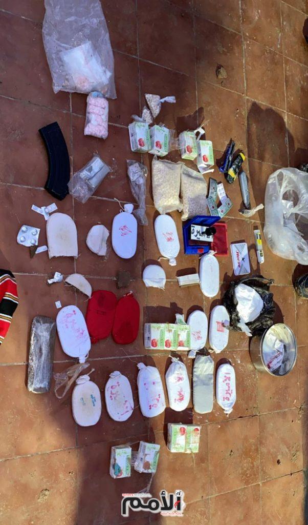 حيث افضت المداهمة الاولى عن القاء القبض على شخصين من المشبوهين بقضايا الاتجار بالمواد المخدرة وضبط بحوزتهما ١٩١ كفاً من مادة الحشيش المخدرة و٤٠ الف حبة مخدرة وكمية من مادة الماريجوانا وسلاح ناري .