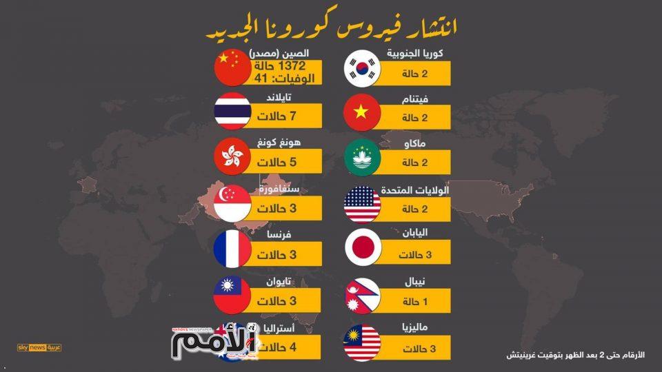 ومع تفاقم وزيادة الإصابات في الصين، بدأت الدول، خصوصا تلك التي فيها مواطنون تابعون لها في ذلك البلد، تتخذ إجراءات للحيلولة دون انتقاله إليها، ومع ذلك سجلت بعض الدول عدة حالات، لكنها لم تزد حتى الآن عن أصابع اليد الواحدة.